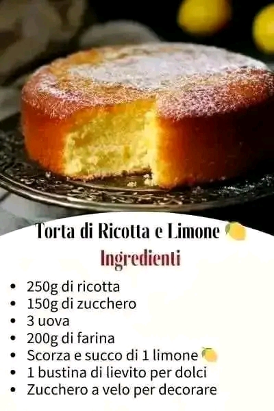 🍋 TORTA DI RICOTTA E LIMONE — Soffice, profumata e irresistibile 🍰