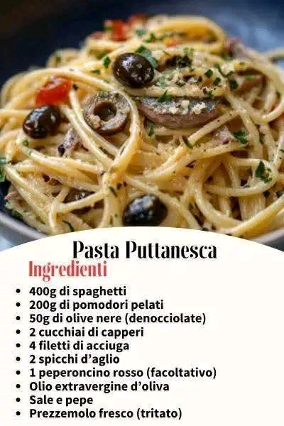 Immaginate un piatto che racchiude l’anima piรน autentica e passionale del Mediterraneo. La Pasta Puttanesca non รจ una semplice ricetta, ma una dichiarazione d’amore per i sapori decisi: l’aciditร vibrante dei pomodori, la sapiditร profonda delle acciughe, il salino intenso delle olive e il calore sfacciato del peperoncino. Incarna perfettamente lo spirito della cucina napoletana: poco ma buono, e soprattutto, pieno di carattere.
