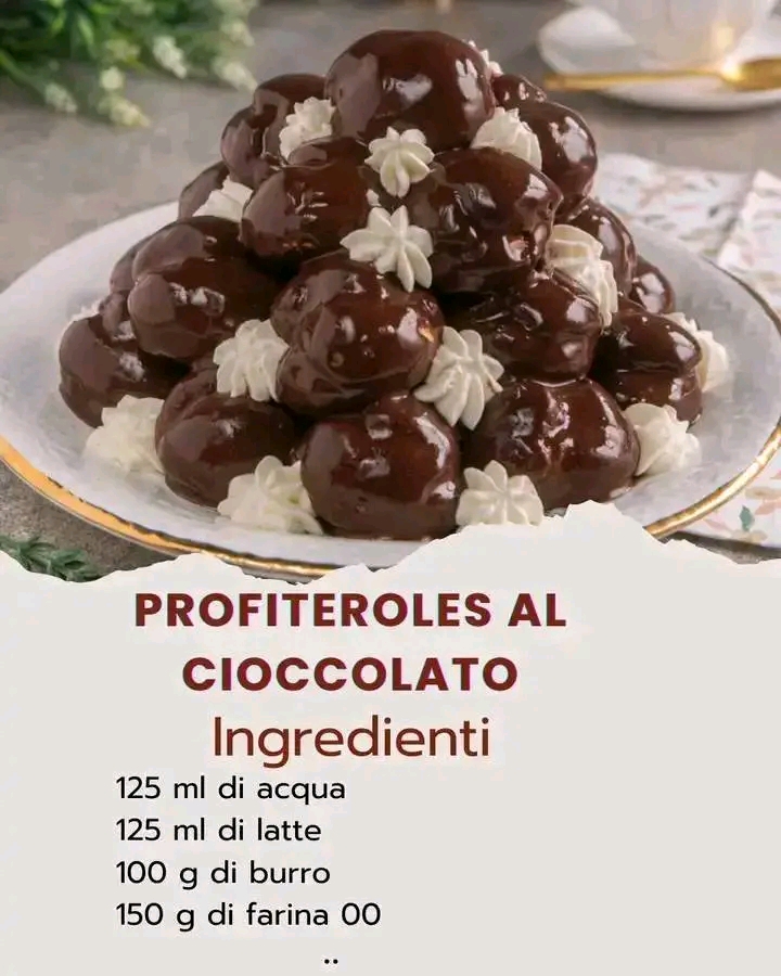 Un’icona della pasticceria: la leggerezza croccante di un bignè, la freschezza imbattibile della panna montata e un manto di salsa al cioccolato intensa e vellutata. Preparare i Profiteroles in casa è un’arte alla portata di tutti, un’esperienza che vi regalerà un dessert dal sapore sublime e dall’eleganza senza tempo.