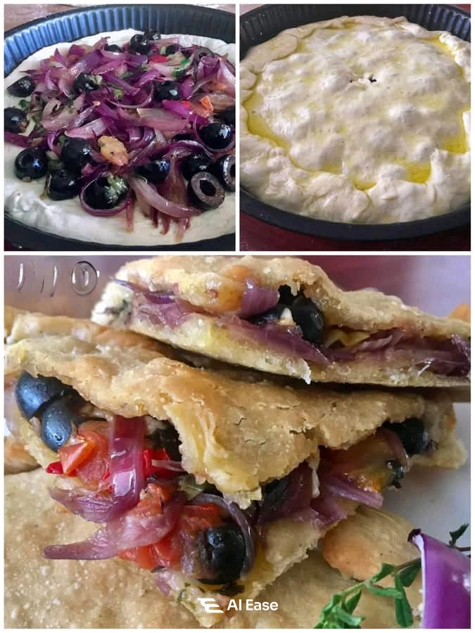 Questa focaccia/calzone pugliese con cipolle e olive รจ un viaggio tra gli ulivi e i profumi del Sud. Servila a fette per un aperitivo, come piatto unico o da portare in gita: ogni morso racconta sole, mare e tradizione. โ๏ธ