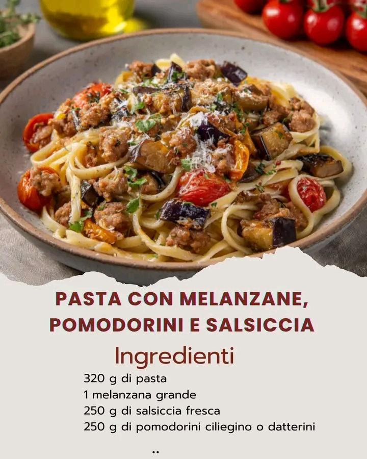 La Pasta con Melanzane, Pomodorini e Salsiccia è una celebrazione dei sapori semplici e autentici della cucina italiana. Genuina, colorata e ricca di gusto, conquista al primo assaggio. Prepara gli ingredienti, aggiungi un pizzico di amore e porta in tavola il profumo del Sud. ❤️🍆🍅