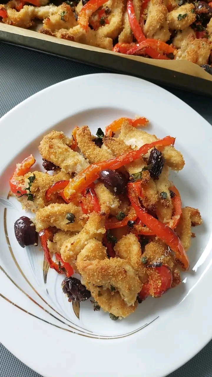 La dolcezza dei peperoni si sposa alla perfezione con la delicatezza del pollo, mentre la panatura leggera al formaggio crea una crosticina dorata e irresistibile. Un piatto semplice, mediterraneo e genuino, perfetto anche per chi segue un’alimentazione leggera o vuole un’idea pratica per il pranzo del giorno dopo. 🍽️