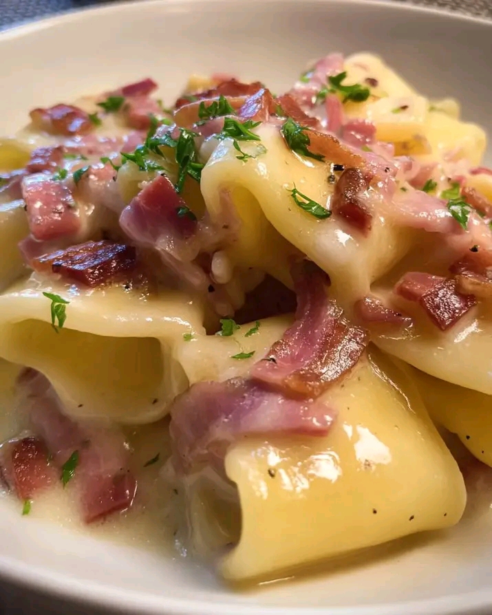🥔 Paccheri con Crema di Patate e Pancetta – Cremosi, Saporiti e Irresistibili ✨