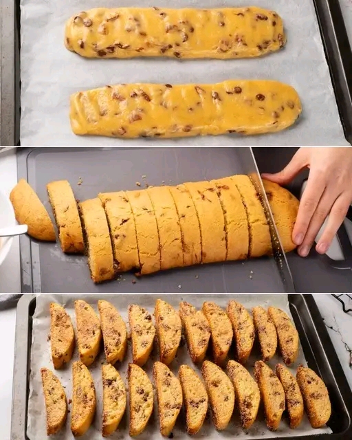 ✨ Si cuoce due volte, proprio come i cantucci: prima come pagnotta lunga, poi tagliato a biscotti e rimesso in forno per diventare croccante e irresistibile.