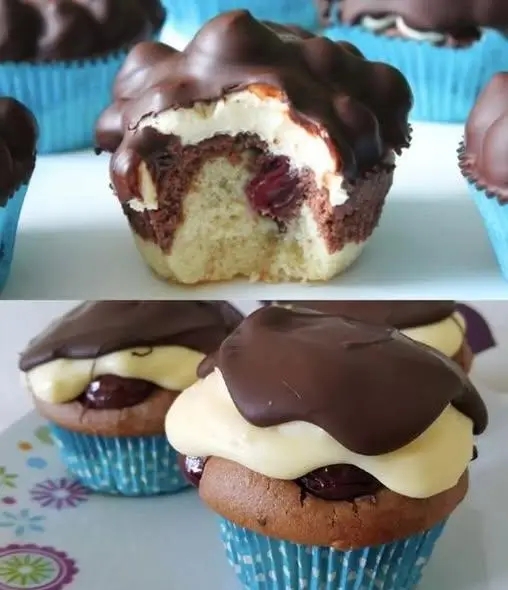 Se ami i dolci soffici e cremosi, questi muffin “Le Onde del Danubio” sono un vero spettacolo! Con un cuore morbido di budino alla vaniglia, una copertura al cioccolato fondente e ciliegie succose che ricordano le onde del fiume Danubio, ogni morso è un’esperienza unica. Ideali per colazioni golose, merende, feste o momenti di coccola. 🍒🍫