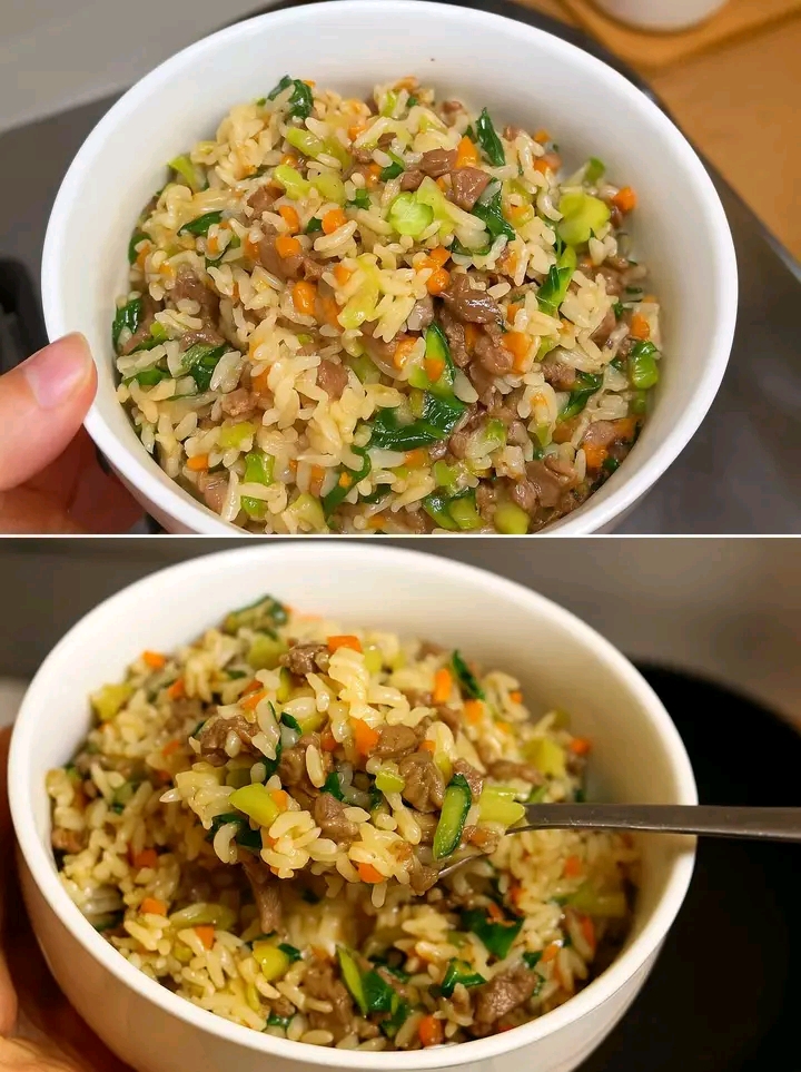 Ci sono giornate in cui la voglia di cucinare è sotto zero, ma la fame no. È proprio in quei momenti che preparo questo riso con carne e verdure: semplice, colorato, ricco di sapore e pronto in pochi minuti. È un piatto completo, perfetto per chi vuole mangiare bene, restare leggero e non sprecare nulla — anche quel riso cotto rimasto dal pranzo!