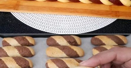 Spolvera cacao amaro e zucchero a velo formando strisce a contrasto. Le puoi fare con carta o con delle strisce di pellicola. Quando le togli, viene fuori quell’effetto zebrato che sembra complicato ma in realtà si fa in 10 secondi.