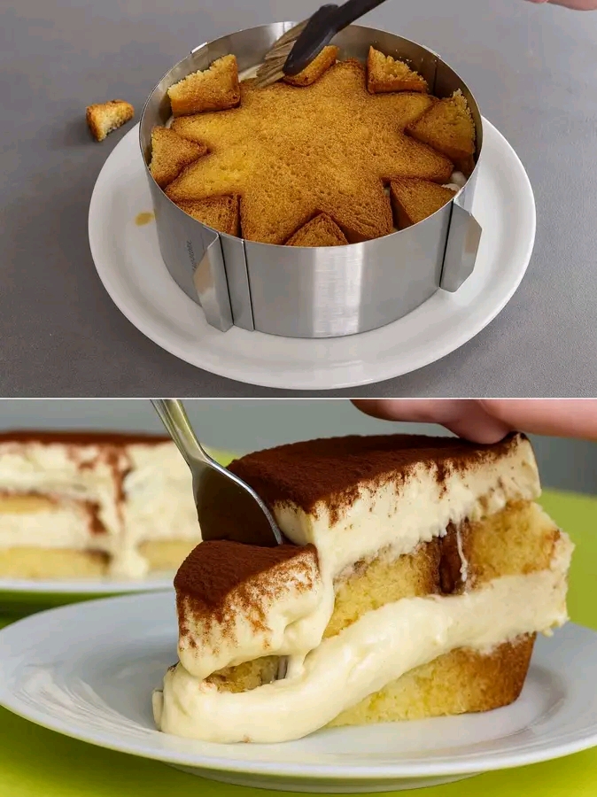 Livella l’ultimo strato di crema, copri e metti in frigo per 3–4 ore (meglio ancora tutta la notte). Quando è ben rassodato, togli lo stampo e spolvera con cacao amaro. Il taglio è cremoso, la crema ondeggia appena… una meraviglia.