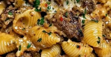 PASTA CREMOSA CON MANZO E FORMAGGIO FILANTE 🧀🔥 Il primo piatto che crea dipendenza (e sparisce in 5 minuti) Ci…