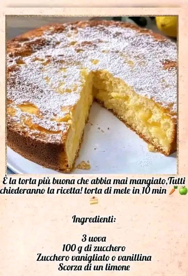 Se non l’hai ancora provata, questa torta di mele in 10 minuti diventerà sicuramente una delle tue ricette preferite. È facile, veloce, soffice, profumata e perfetta in ogni momento della giornata. Una di quelle torte che si preparano in pochi minuti ma che conquistano tutti al primo assaggio.