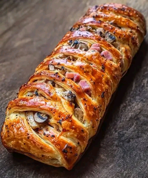 🥐🍄🧀 Treccia Gourmet di Pasta Sfoglia con Funghi, Prosciutto e Formaggio