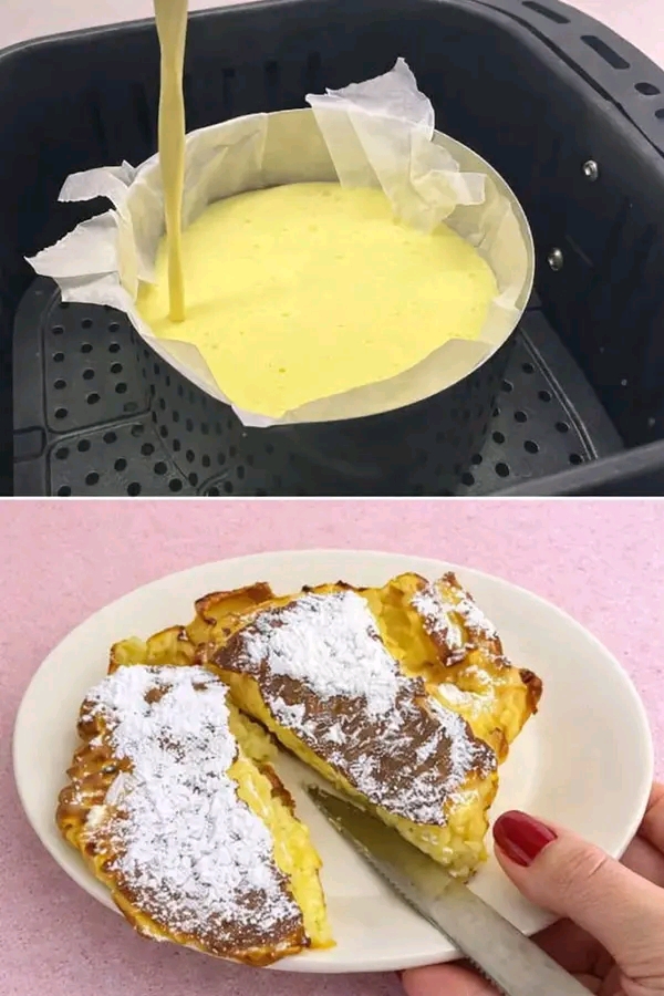 La torta richiede 25-30 minuti di cottura a 160°C in una friggitrice ad aria, o 30 minuti a 180°C in un forno statico.