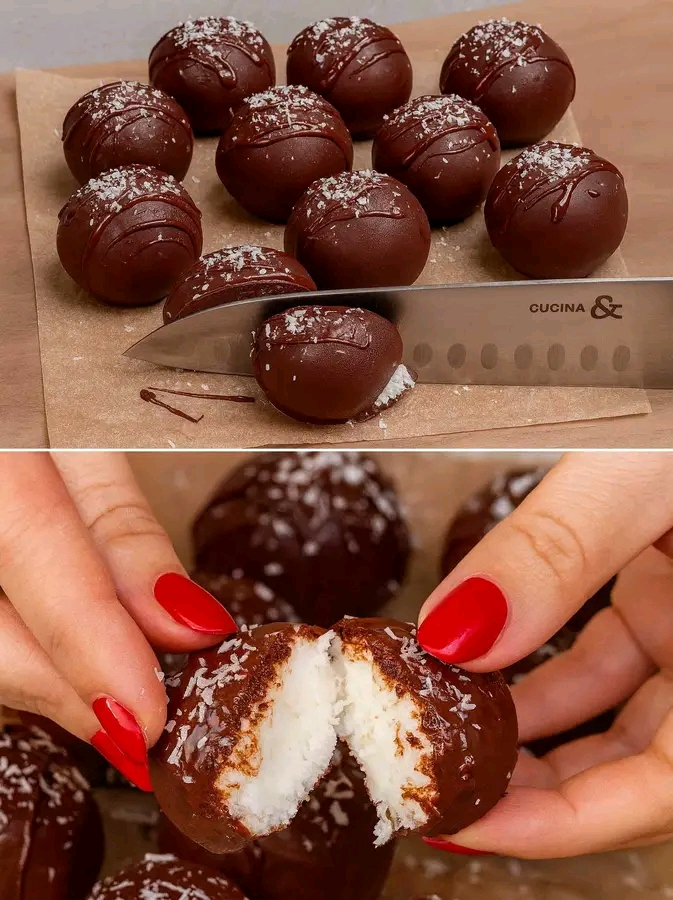Sono dei piccoli “bon bon” fatti in casa: morbidi, freschi, cremosi al morso e con quella copertura croccante di cioccolato che ti fa venire voglia di mangiarne subito un altro. La cosa bella è che si preparano in 5 minuti netti: impasti, formi le palline e le lasci riposare.