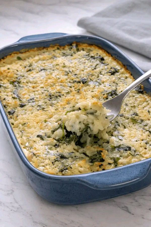 Questo riso al forno è uno di quei piatti che nascono quando hai voglia di comfort food, ma senza andare su cose troppo pesanti. È cremoso, profumato, con gli spinaci che si sentono ma non stancano e quel cuore filante che… vabbè, diciamolo: è il motivo per cui lo rifaccio spesso 🧀✨
