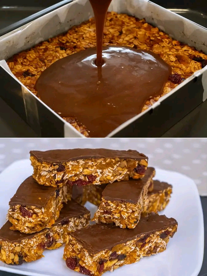 Sciogli a bagnomaria: cioccolato fondente e olio vegetale. Mescola finché è liscio. Versalo sulle barrette, spalmandolo uniformemente. Lascia rassodare completamente 🍫✨
