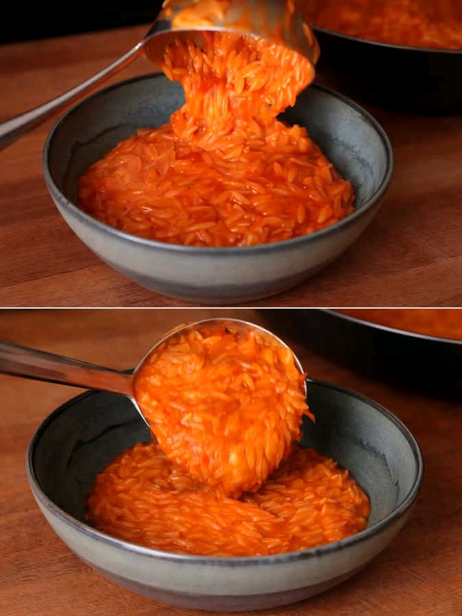 Gli ingredienti principali sono i risoni, una cipolla media, la polpa di pomodoro, la cannella in polvere, acqua bollente, sale, pepe nero e olio extravergine d’oliva.