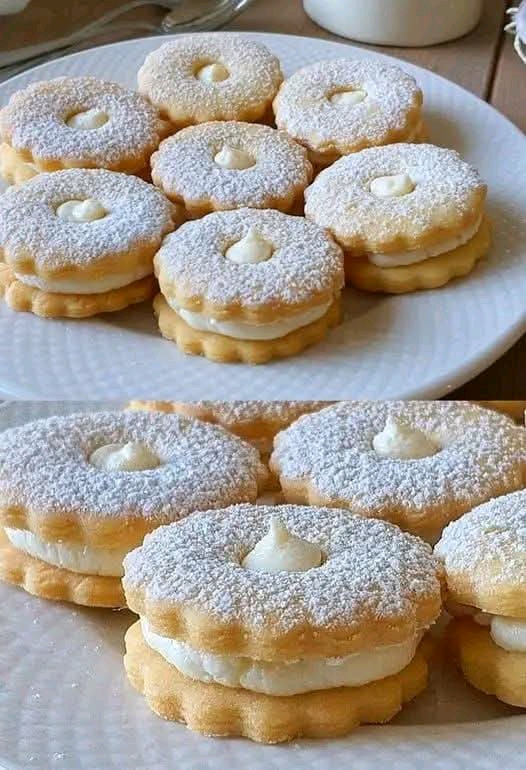 Spolvera abbondantemente di zucchero a velo i dischetti forati. Farcisci i dischetti interi con un ciuffo generoso di crema e chiudi delicatamente con il “coperchio” zuccherato. La pressione farà uscire la crema dal foro centrale, creando un punto luce irresistibile.