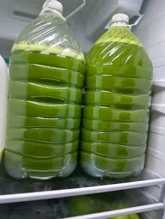 4️⃣ L’Unione Finale: Una volta ottenuto il succo, versalo in una grande brocca e mescola bene con un cucchiaio di legno. Noterai quel colore verde smeraldo vibrante… è la vita che entra nella bottiglia! 🧪