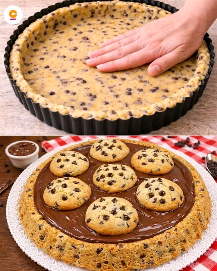 Hai mai desiderato mordere un biscotto gigante ripieno di pura felicità? Questa ricetta unisce la consistenza inconfondibile del Chocolate Chip Cookie americano alla struttura di una crostata italiana, il tutto sigillato da uno strato generoso di crema alle nocciole. È il dessert perfetto per le feste, i compleanni o semplicemente per quei giorni in cui hai bisogno di un abbraccio zuccheroso.