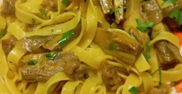 Fettuccine con salsiccia e carciofi